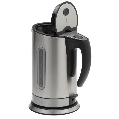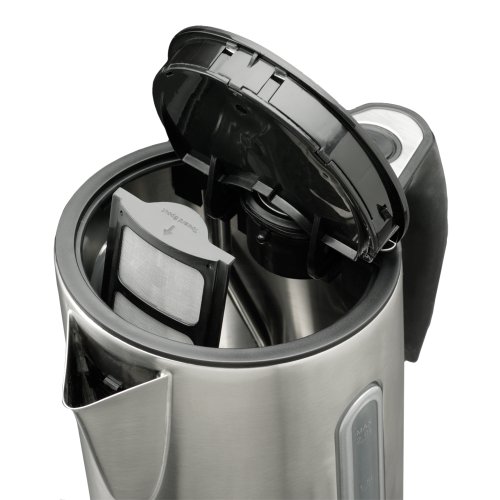 The De'Longhi DSJ900 Electric Kettle has a seamless brushed aluminum body, is durable, stylish, and complements any decor. The water level indicator, located in the handle, lets you know exactly how much water is left and the removable, washable, water filter eliminates impurities and other deposits from water.