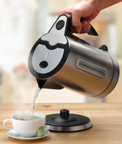 - 1.5-liter (50 ounce) capacity- Two-level auto shut-off automatically shuts down the kettle when the water begins to boil or the kettle is empty